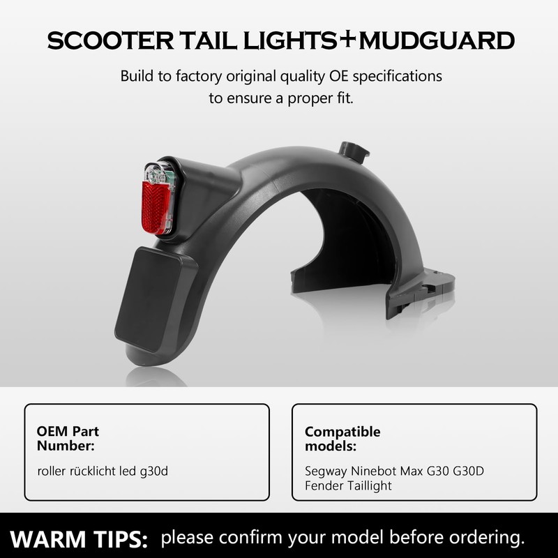 Anlseiod Rear Mudguard with Rear Light for Seway Niebot Max G30 G30LP G30LE G30LE II Replacement Accessories