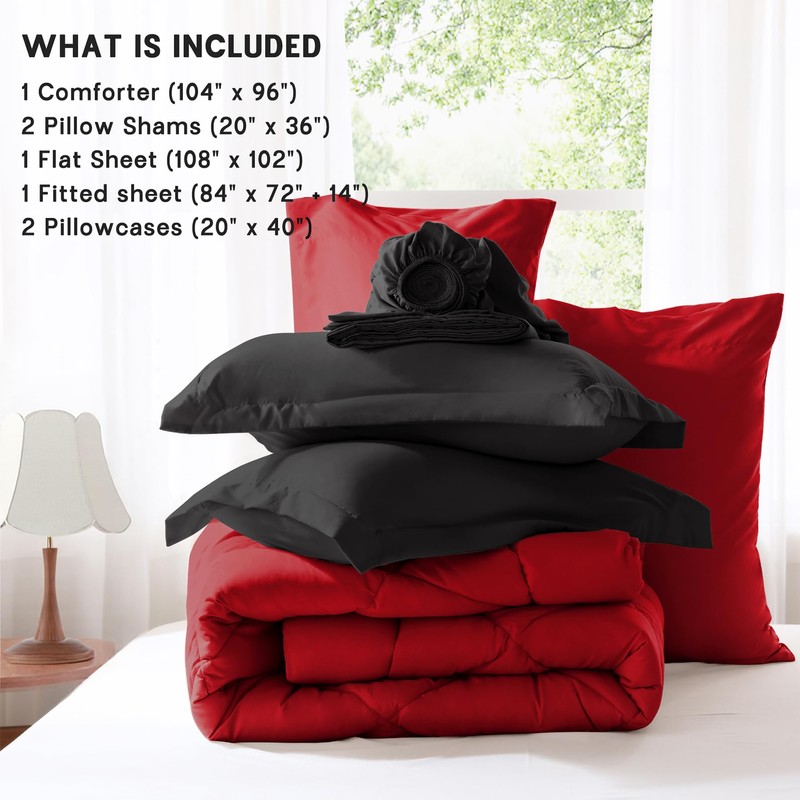 Anluoer California King Comforter Set,Red and Black Bed in a Bag 7 Piece,Bedding Set with Soft Down Alternative Fill,Bed Set Includes Comforter, Fitted Sheet, Flat Sheet,Pillowcases and Shams