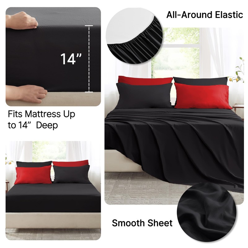 - 【Durable & Easy-Care Sheets】:Fade-resistant, shrink-proof sheets survive endless washes without pilling. Deep 14" pockets cling securely to thick mattresses (even with pets or midnight toss-and-turners!), so corners stay put and your bed stays fresh.