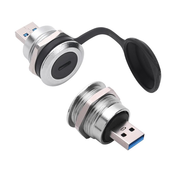 ANMBEST 2PCS Panel Mount USB Adapter, USB C Female to USB3.0 Male Circular Connector, 5Gbps Data Transfer USB Pass Through Cable Coupler Extension Converter with Waterproof/Dust Cap