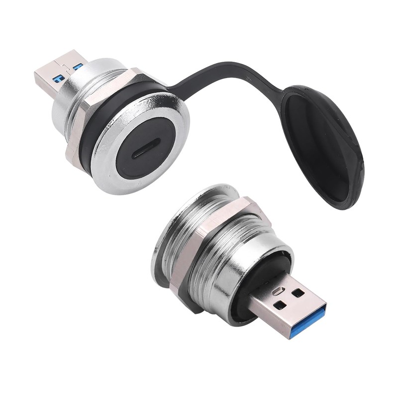 - USB C Female to USB3.0 Male: A panel mount TYPE C 3.1 to USB3.0 connector is a type of connector that allows you to mount a USB C port on a panel or surface and provides a USB A port for connection. Threaded Fixing Round connector socket, provide stable data transmission and charging environment.
