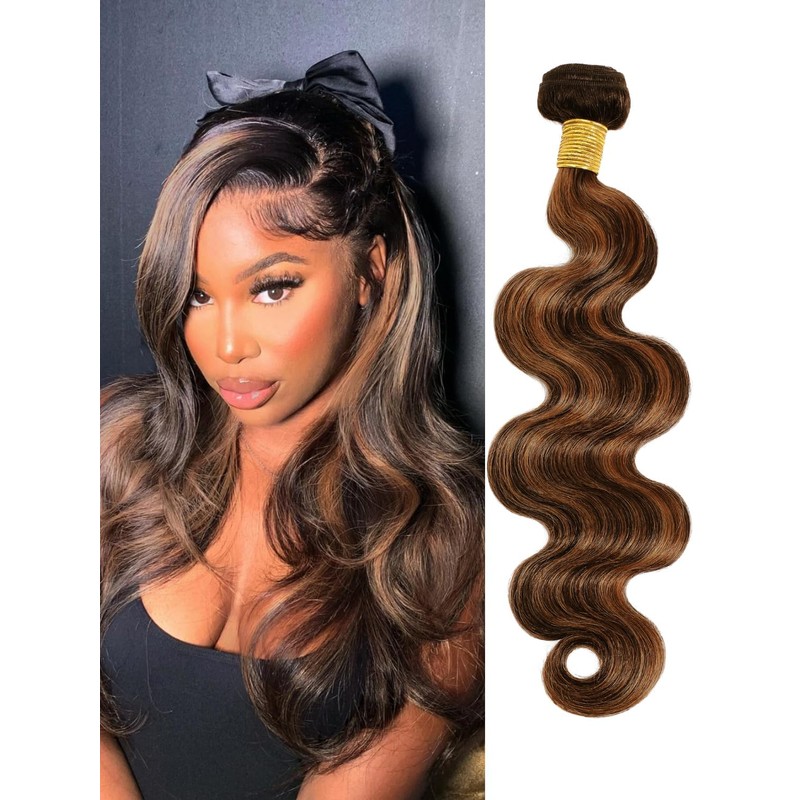Hair Bundles Grade: 10A brown highlight body wave human hair bundles, with more bounce, thicker ends, shinier wavy hair