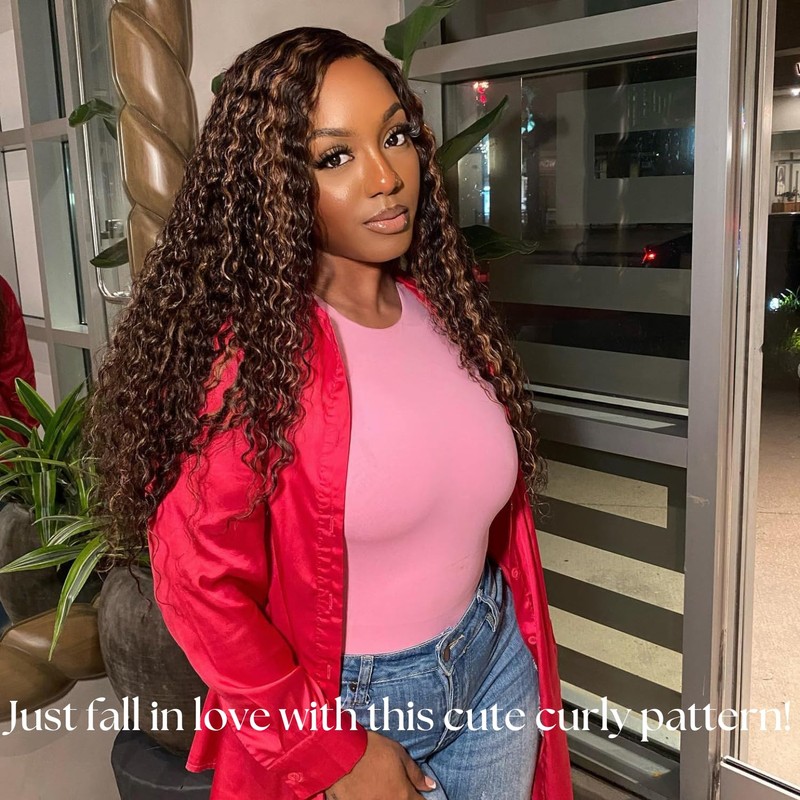 Highlight Curly Bundles Grade: 10A brown highlight water wave human hair bundles, with more bounce, thicker ends, shinier wavy bundles
