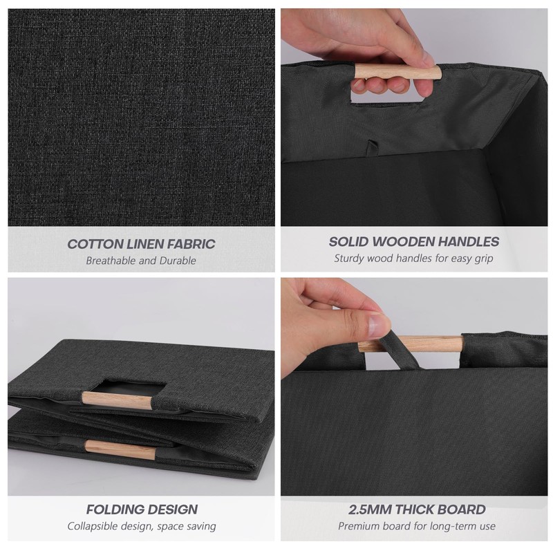 ANMINY 2PCS Storage Baskets for Organizing Collapsible Fabric Storage Bins Boxes with Wood Handles Closet Shelves Cube Organizer Bins Clothes Laundry Storage Container - Large, Black