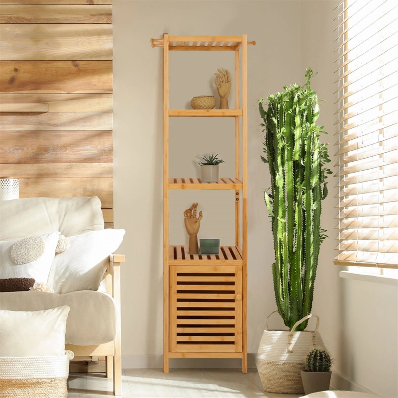 - 3 polishing processes and varnish treatment to make the surface of the bamboo bathroom cabinet smooth; Designed for wet situations, suitable for bathroom and kitchen storage; Daily maintenance is also simple, you only need a towel to remove dirt or oil