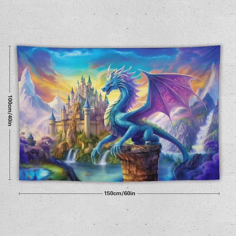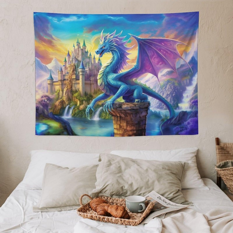 ANMOGID Dragon Tapestry Castle Wall Hanging Aesthetic Purple Blue Decoration For Bedroom Living Room Wall Art Tapestries 40"x60"