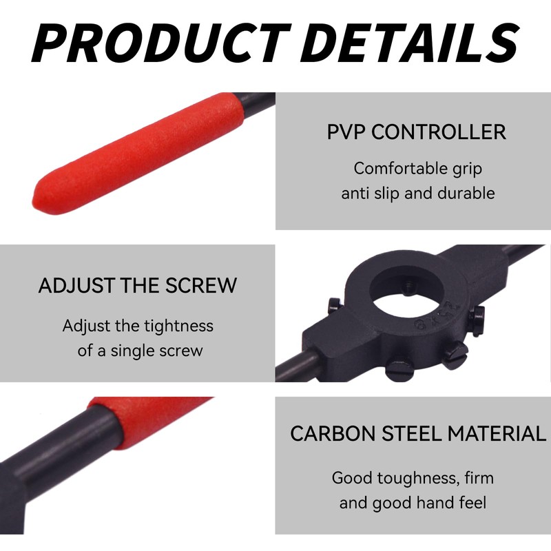 - Wide range of applications: The Die Handle Wrench can accurately cut, repair or clean external threads on rods, bolts, screws, pipes, shafts and other cylindrical objects, or simply remove bolts and threaded rods (when used with round dies).