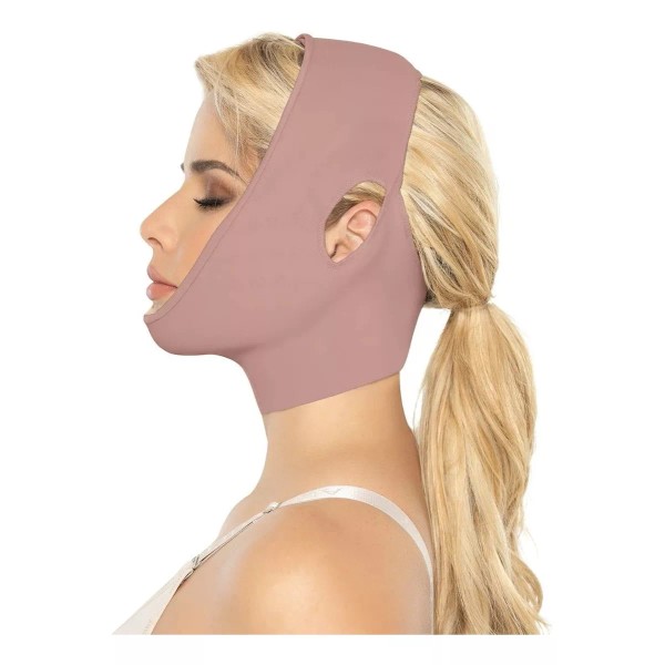 Banda facial de soporte post quirúrgico para mentoplastia y otoplastia, ideal como prenda de uso diario, accesorio quirúrgico que ayuda a la pronta recuperación en tratamientos estéticos.