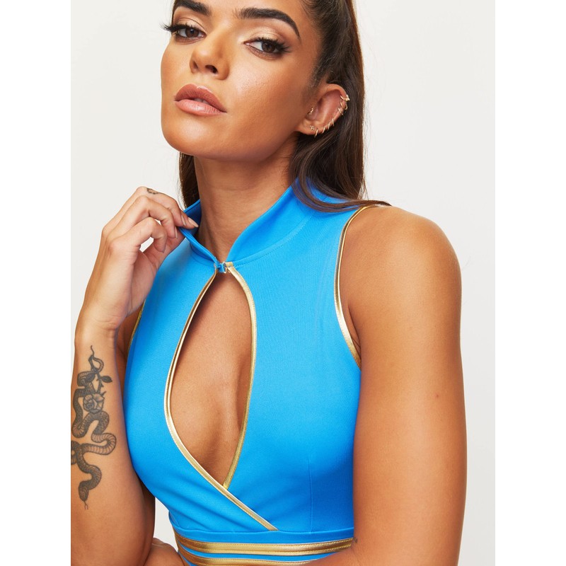 - EVERYTHING YOU NEED: This complete look includes a high-waist stretch mini dress, zipping up at the back edged with metallic gold-tone trim and a matching air hostess cabin hat.