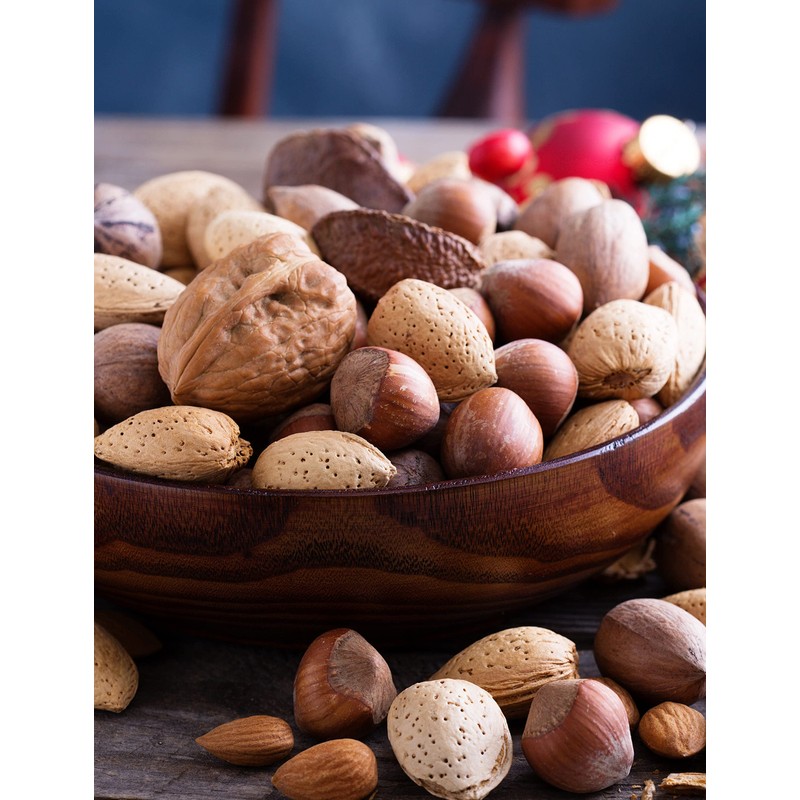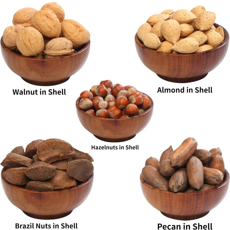 PREMIUM MIXED NUTS IN SHELL: Heart healthy delicious nuts, perfect combo including California Jumbo Chandler Walnuts, Extra Large Pecans, California Almonds, Large Oregon Hazelnuts (filberts), all in shell, raw natural taste. They come in their shells and stay fresh for a longer time.