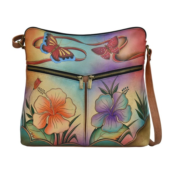 Anna by Anuschka Large Crossbody, Antique Hibiscus
