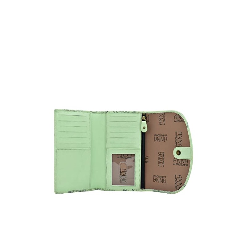 Anna by Anuschka Women's Geniune Leather Hand Painted Large Three Fold Checkbook Clutch Wallet - Dreamy Wings Sage