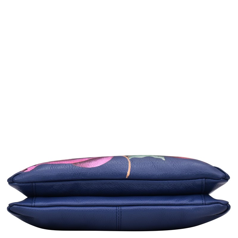 Anna by Anuschka Women's Hand-Painted Leather Small Zip Around Crossbody, Moonlit Peonies, One Size