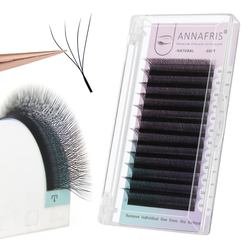 ANNAFRIS 4D Eyelash Extension, Premade Fan W C Curl, 9 mm, Pre-Fanned Ready-to-Use Fan Eyelash Extension, 4D Russian Volume Eyelash Extension, Cluster, Artificial Lash (0.07-C 9 mm)
