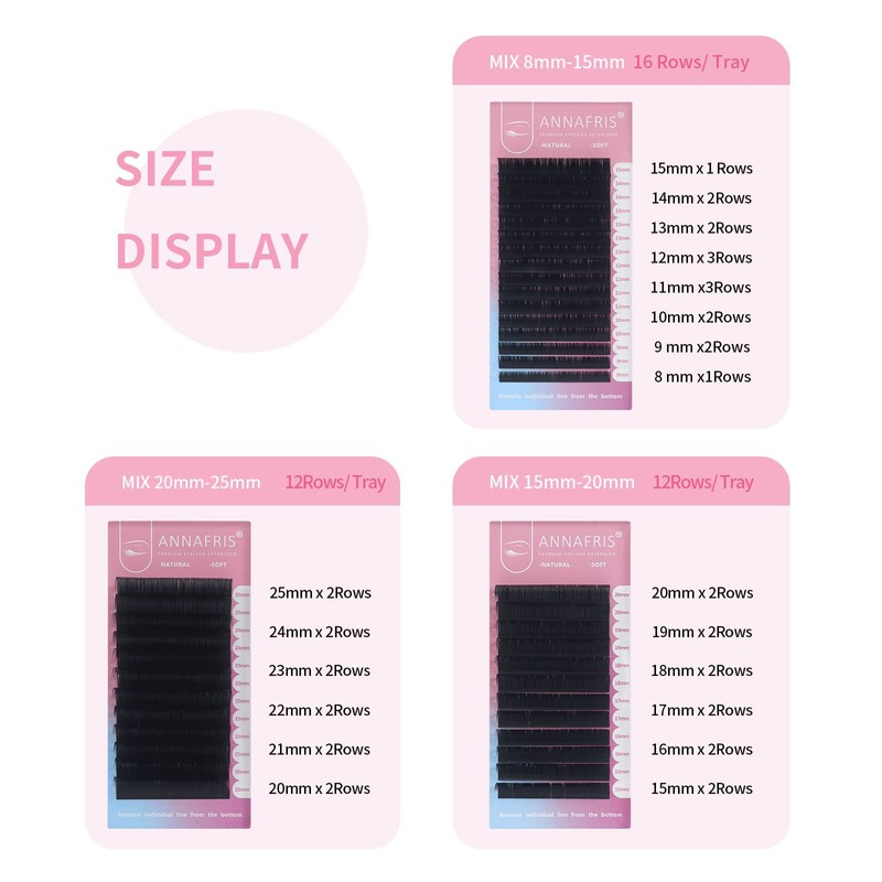 ANNAFRIS C/D/L/L+/LC/LD/LU/M Curl Individual Eyelash Extension, Natural Classic Synthetic Mink Eyelashes, Matte Black False Lashes, Volume Eyelash Extensions (0.10 mm (8-15 mm) Mix, C Curl)