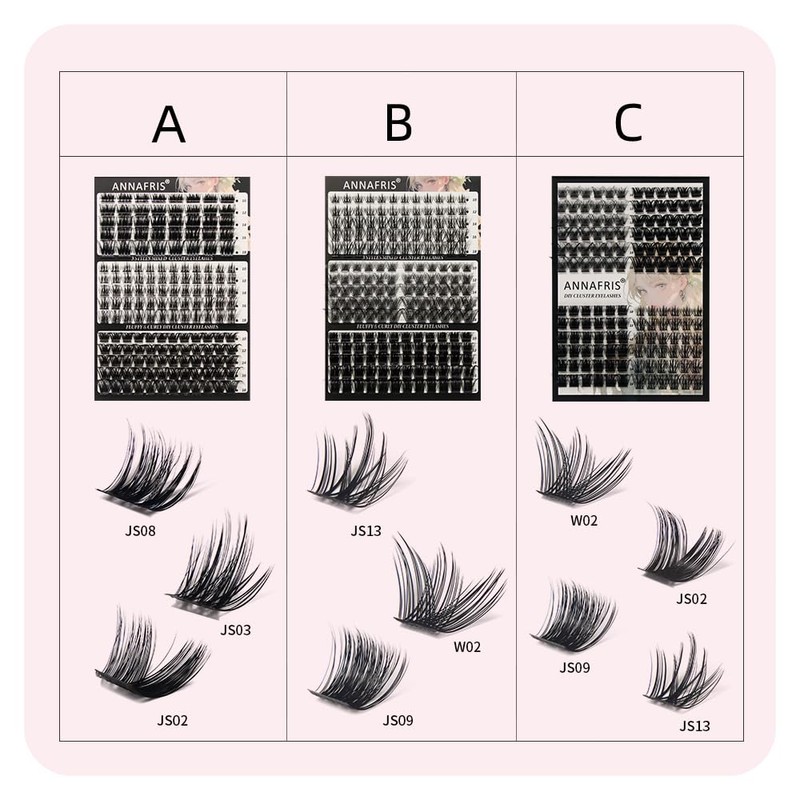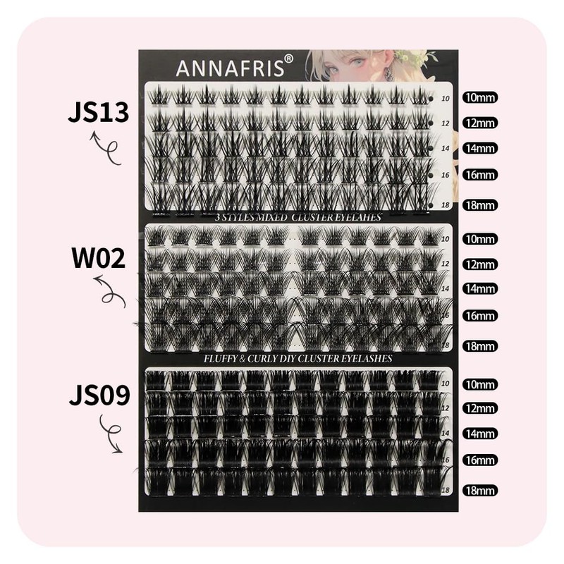 ANNAFRIS Eyelash Extensions, Eyelash Clusters, Lashes, Artificial Eyelashes, Individual Eyelash Extension (B JS13+W02+JS09)