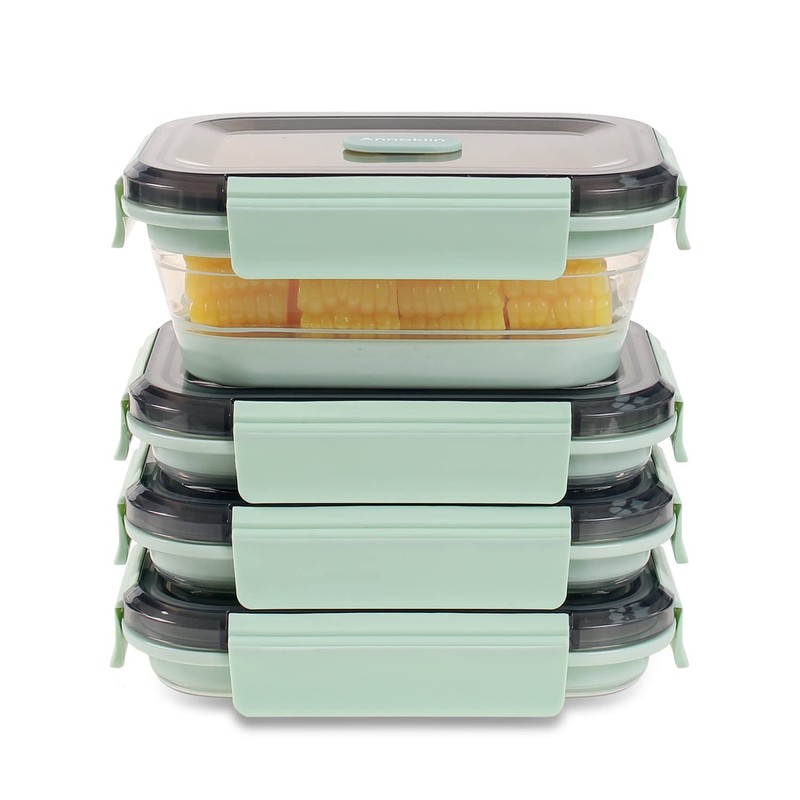 - 【GOOD LOOKING】Annaklin collapsible food storage container comes in a crystal-clear body and lid with mint green strong snaps and bottom. You can easily see through what is inside. Mint green means vitality and hope which brings you fresh feeling. BPA free.