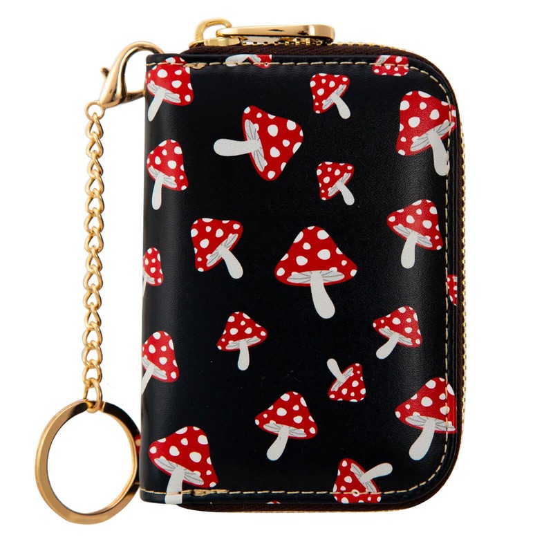 ANNAMISSI Womens Leather Wallet RFID Blocking Credit Card Holder Zipper Card Case for Ladies Girls, Mushrooms, Pattern