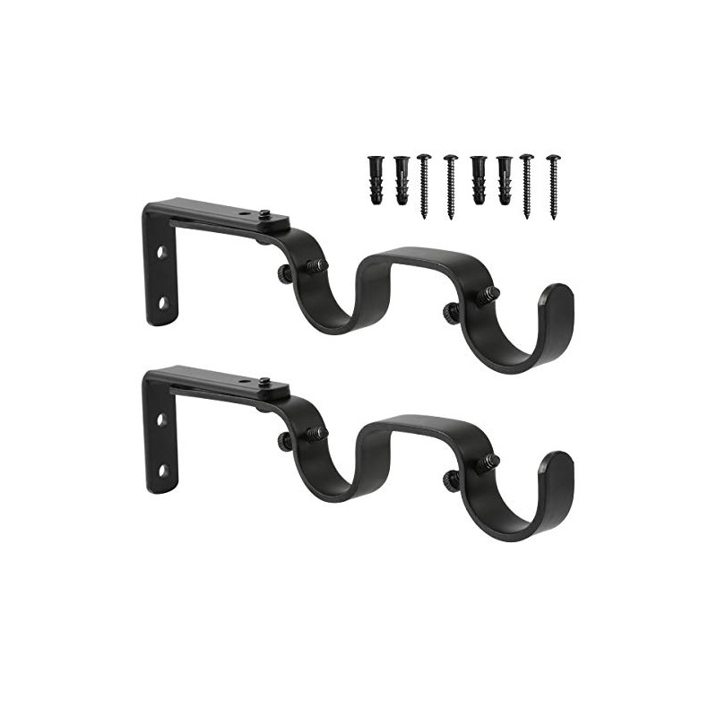 Anndason Heavy Duty Curtain Rod Brackets Adjustable Double Rod Holders 1 Inch Rod (2 PCS, Black)