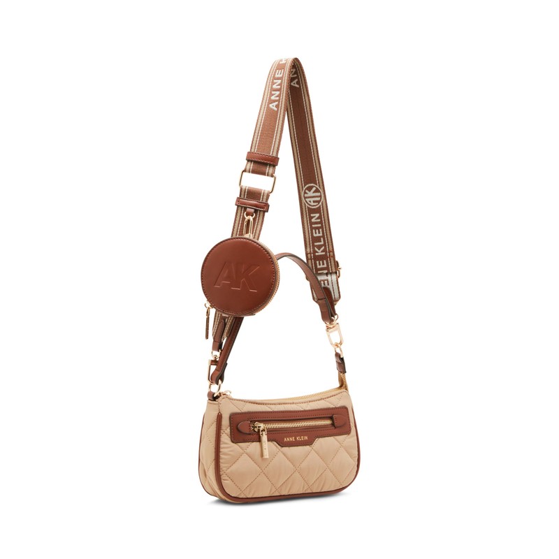 Anne Klein Quilted Nylon pochette, Oatmilk/Chestnut