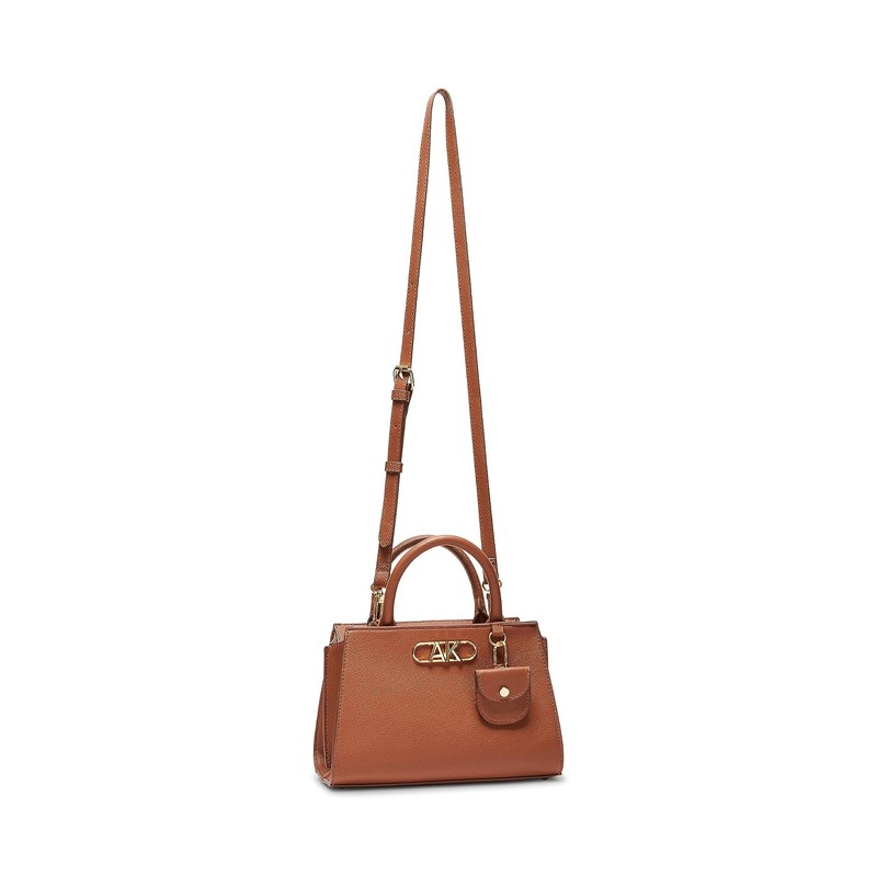 Anne Klein Women's Convertible Mini Satchel with Ak Bevel Logo, Chestnut, One Size