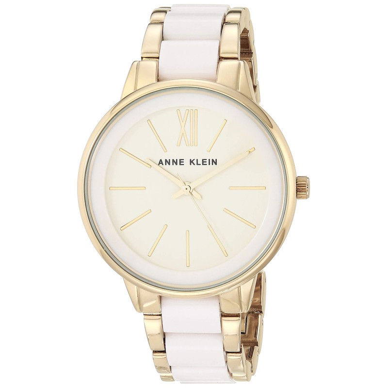 - Gold-tone adjustable link bracelet with ivory resin center links; jewelry clasp and extender
