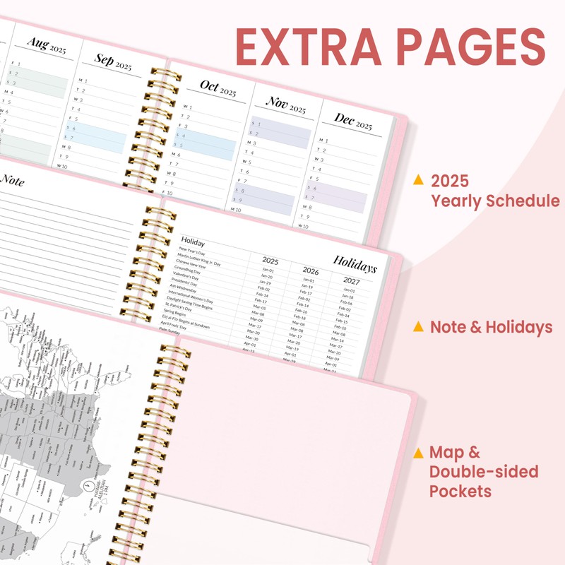 - PREMIUM PAPER - 100GSM Paper Guaranteed Thicker Than Normal! Keeps your planner neat and attractive in your 6.4" x 8.5" sizes 2025 planner book; Water-resistant plastic cover and practical back pocket for added convenience; Sturdy 2025 agenda planner book withstands frequent transfers, ensuring long-lasting reliability and durability to the entire year. Value for money!
