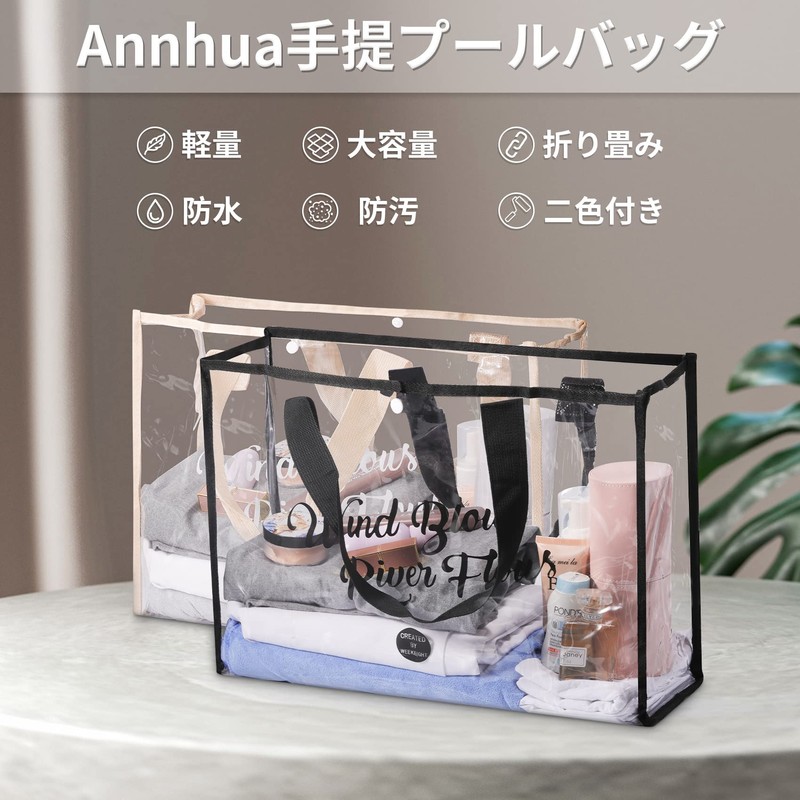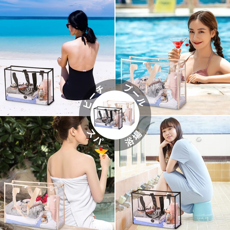 Annhua Pool Bag, Transparent Spa Bag, Large Capacity, Swimming Bag, Lightweight, Beach Bag, Foldable, Hot Spa Bag, Transparent Pool Bag, Swimming Bag, Breathable, Quick Drying, Swimming, Hot Springs, Exercise, Travel, Transparent PVC, Unisex, 18.5 x 5.9