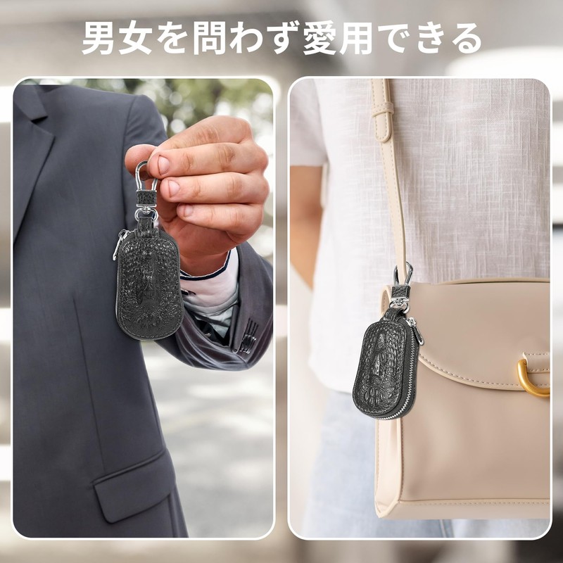 - Genuine Leather Material for a Long Time - Made of durable and soft genuine leather, it can be easily wiped off if it gets dirty. The surface of the remote key case is embossed with crocodile pattern for a more fashionable look