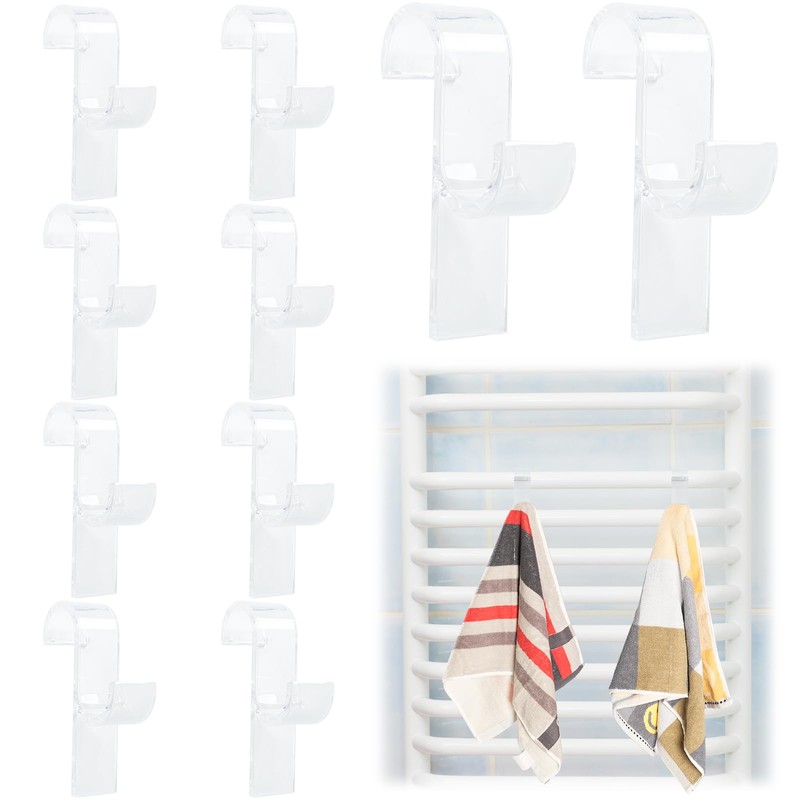 Annickee 10 Pcs Round Towel Radiator Brackets Hooks, Movable Over Radiator Towel Rail Hook, Bath Hook, Bathroom Heated Towel Rail Hooks for All Standard Radiators (Transparent)