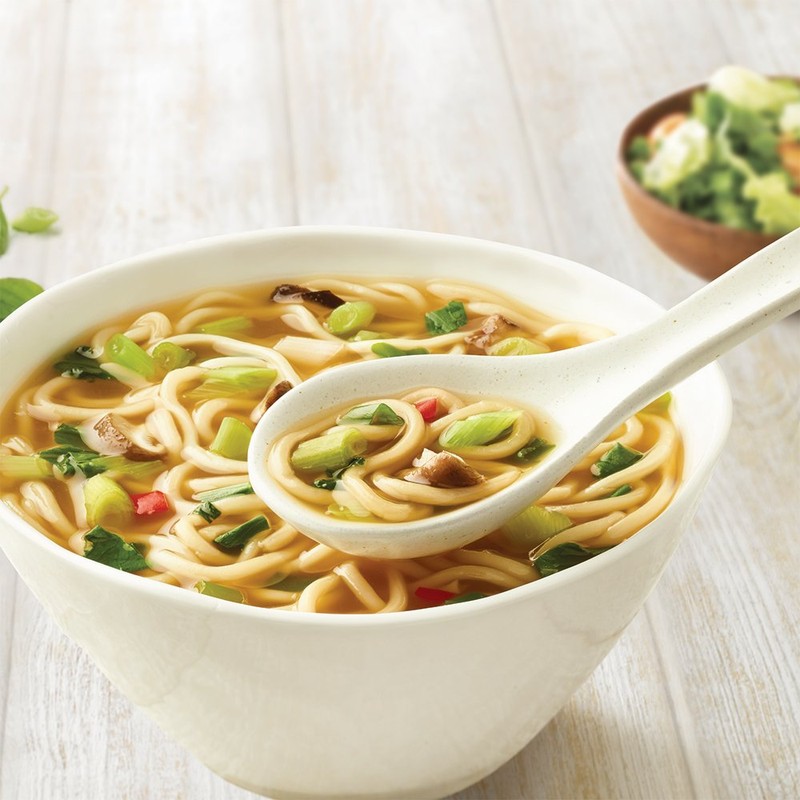 - Vietnamese-style pho with delicious pre-cooked Hokkien noodles. A rich vegetable broth with scallions and shiitake mushrooms.