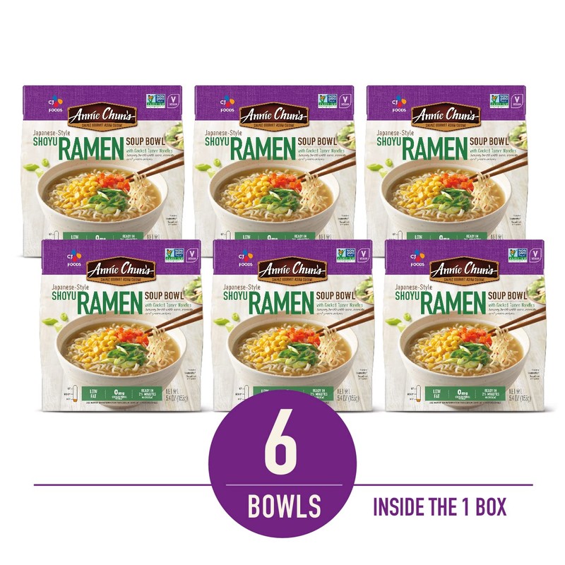 Annie Chun's - Noodle Soup Bowl, Shoyu Ramen Flavor, Instant & Microwavable, Non-GMO, Vegan, Healthy & Delicious, 5.4 Oz (Pack of 6)