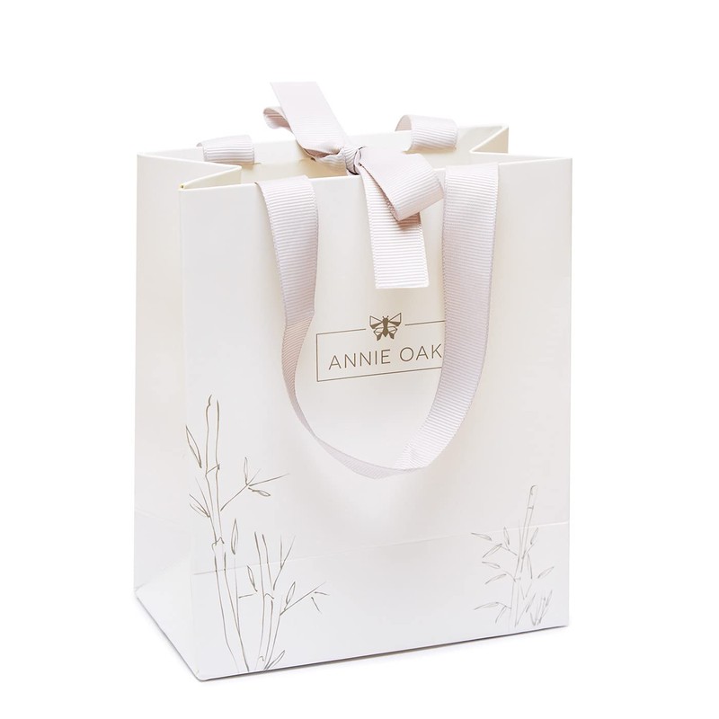 - Gift of Giving: Your jewellery is presented on a stylish piece of card with UK illustrated designs by Annie Oak’s graphic designer and a little empowering quote, placed in a presentation box made of one of the most sustainable plants on earth – bamboo, engraved with the Annie Oak logo. A beautiful gift bag is also included ready to give to your special person. We suggest adding your own grey tissue paper for the maximum unwrapping experience.
