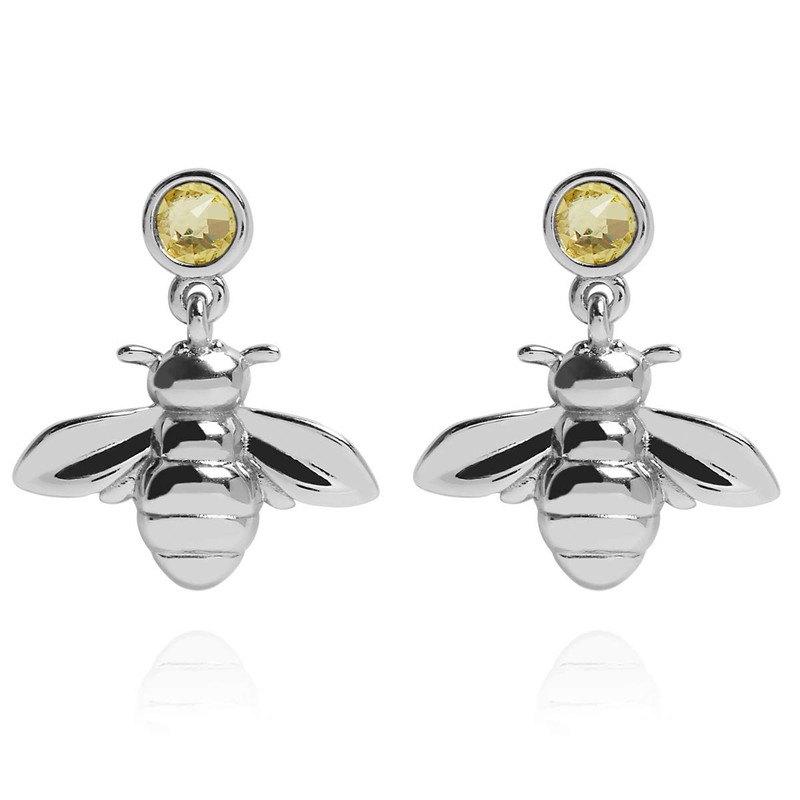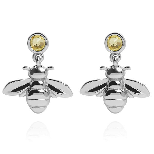 Annie Oak Womens 925 Silver Bee and Crystal Drop Earrings