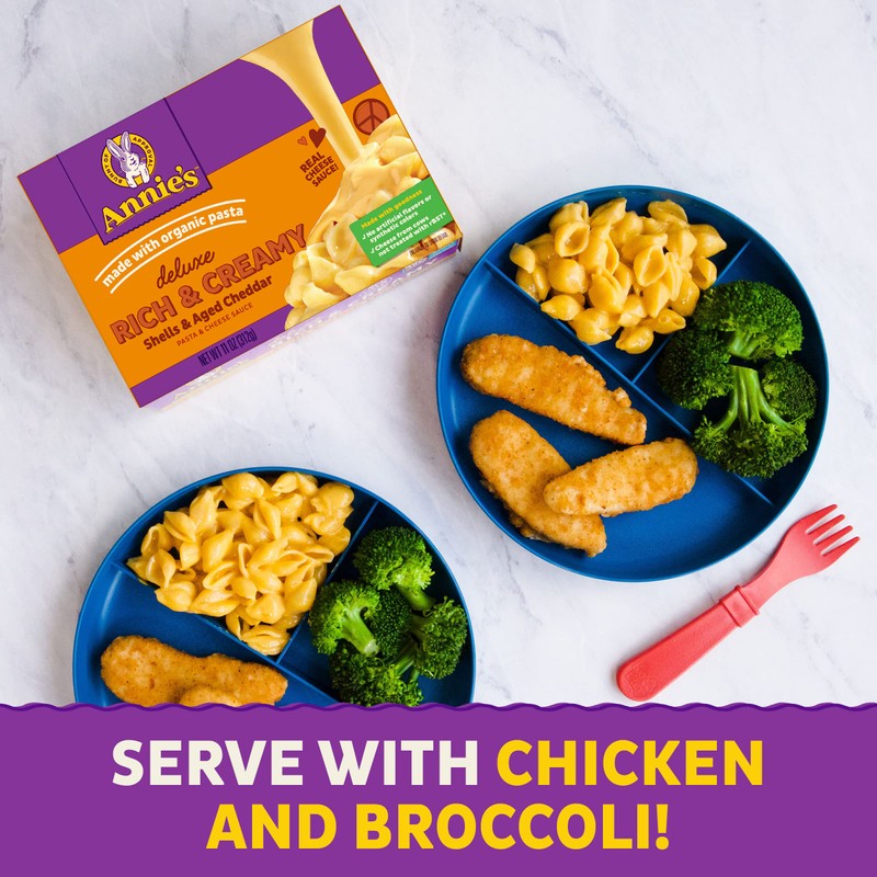 Annie’s Deluxe Macaroni & Cheese with Organic Pasta, Real Aged Cheddar & Shells, 11 oz. (Pack of 12)