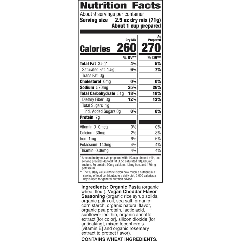 - VEGAN MAC N CHEESE: Deliciously creamy plant-based alternative to everybody's favorite comfort food made with organic pasta and a rich cheddar flavored sauce