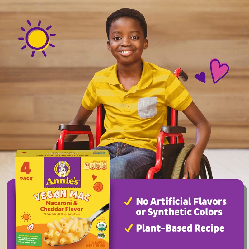 Annie's Vegan Mac and Cheddar Flavor Sauce, Vegan Macaroni and Cheese Made with Organic Pasta, 4 Ct, 24 oz