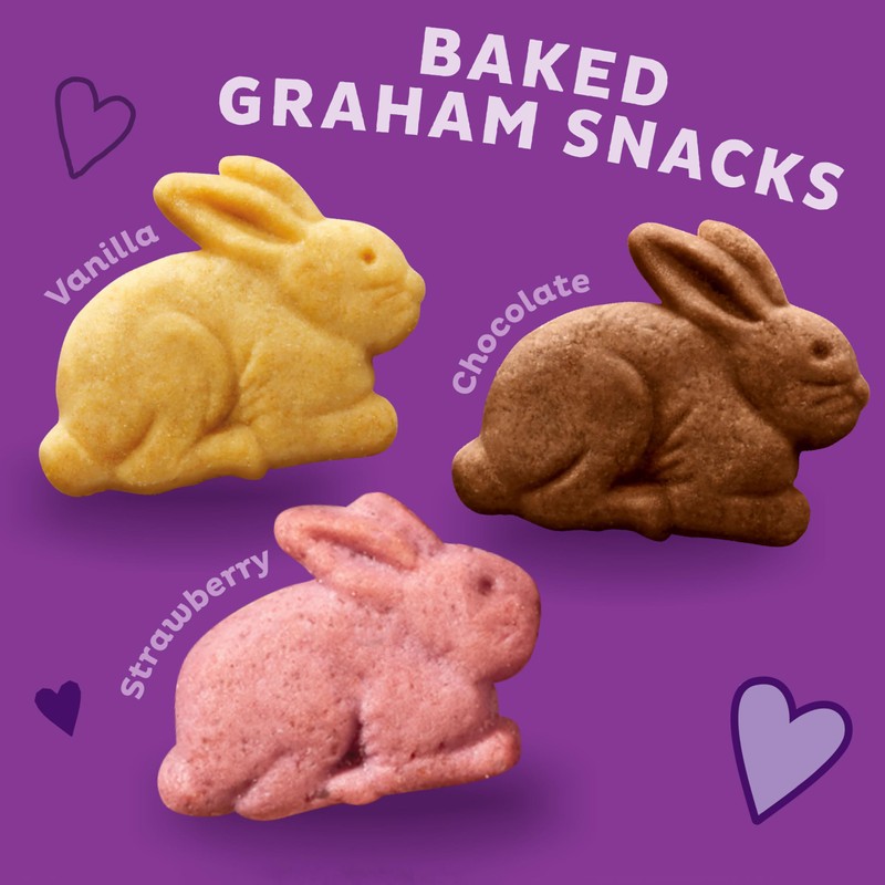 - FUN BUNNY SHAPES: These bunny-shaped graham crackers come in strawberry, vanilla and chocolate flavors