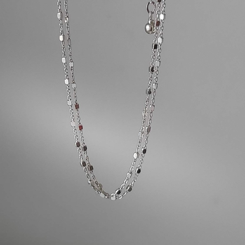 Annika Bella Double-Layered Sterling Silver Bracelet, Length 6.75-7.75 Inches, Stranded Satellite, Waterproof, Minimalist 925 Hand Jewel, Dainty Jewelry Gift for Her (Cubes Satellite Chains)