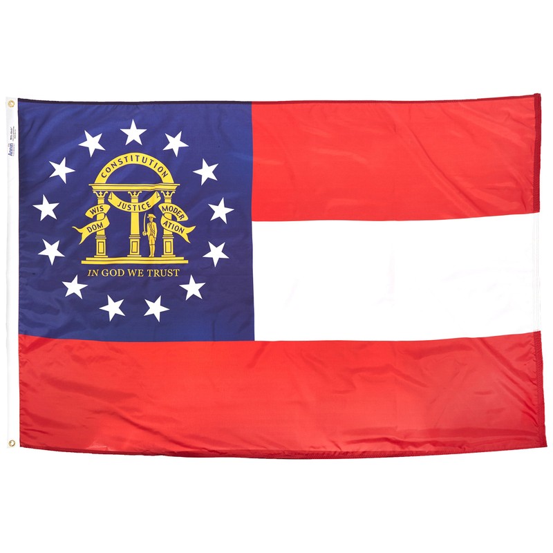 The current flag was adopted in 1895 and is a crimson cross on a white field. Although it is square, law does not lay down the dimensions. The state governor's flag is almost identical, except for carrying the state seal in the top triangle and the state crest, a boll of cotton, in the lower one. The design of the flag was inspired by the St. Andrew's Cross of Scotland which possesses a blue field with a white cross. At one point in its history Alabama had a very heavy concentration of Scottish ancestry in its population. Family owned for over 167 years, Annin Flagmakers takes special pride in producing high-quality, American-made state, international, and military flags. All Annin Flagmakers flags are sewn in either South Boston, VA or Coshocton, OH. Our superior quality is time-tested and meets the requirements of the most discerning buyer. Nyl-Glo, Tough-Tex and Bulldog are registered trademarks and manufactured exclusively by Annin Flagmakers.