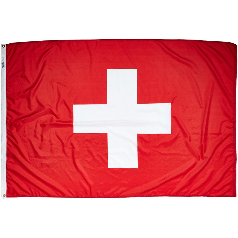 Annin Flagmakers Model 198162 Switzerland Flag Nylon SolarGuard NYL-Glo, 4x6 ft, 100% Made in USA to Official United Nations Design Specifications