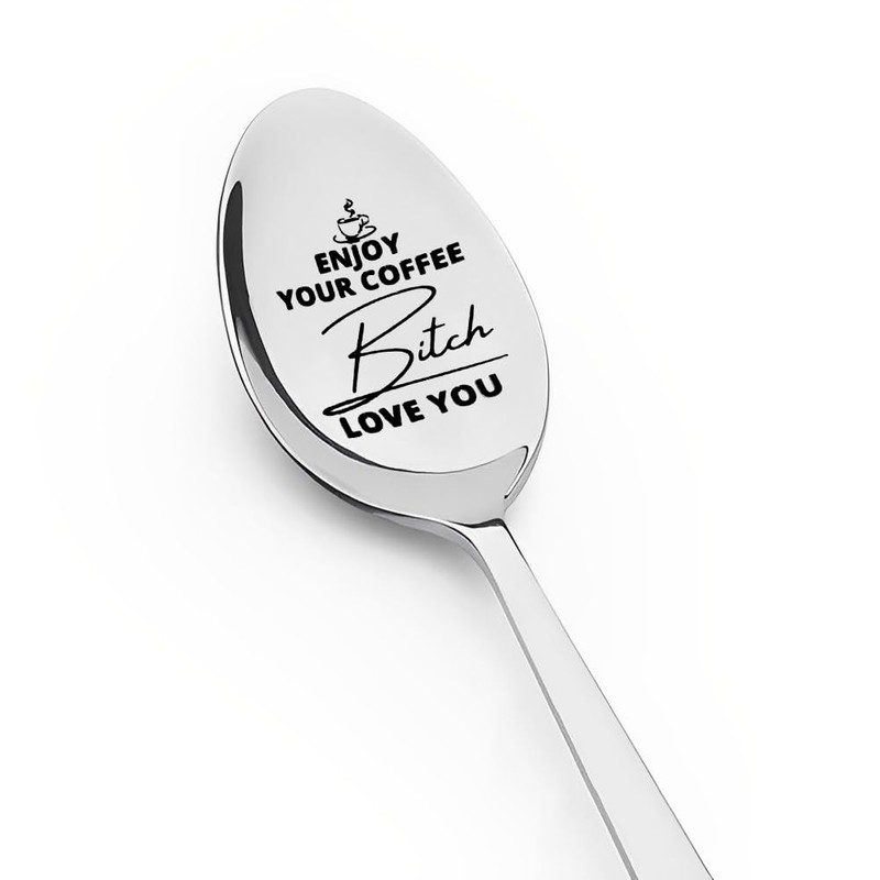 - Funny Best Friend BFF Friendship Bestie Gifts Spoon for Women Men: The gag best friend coffee spoon engraved with enjoy your coffee bitch love you, funny ghost friends gifts for bff besties as birthday bday gifts for boys girls