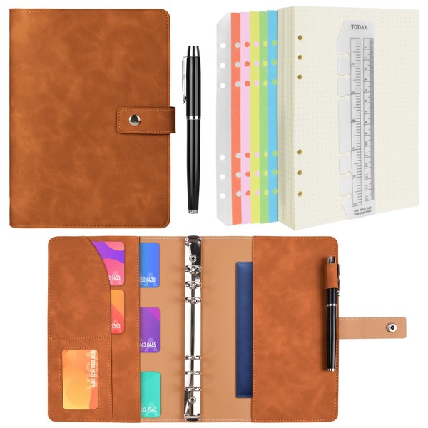 - 【Multifunctional Design】PU leather planner binder is a notebook that combines organization and recording, which is convenient and flexible. In addition to basic writing purposes, the card slots and pockets inside our notebook can be used as card books, mobile phone bags, and coin purses, keeping your documents, bills, passports, invoices, ID cards, debit cards, coupons, tickets, stationery, etc. neat and orderly