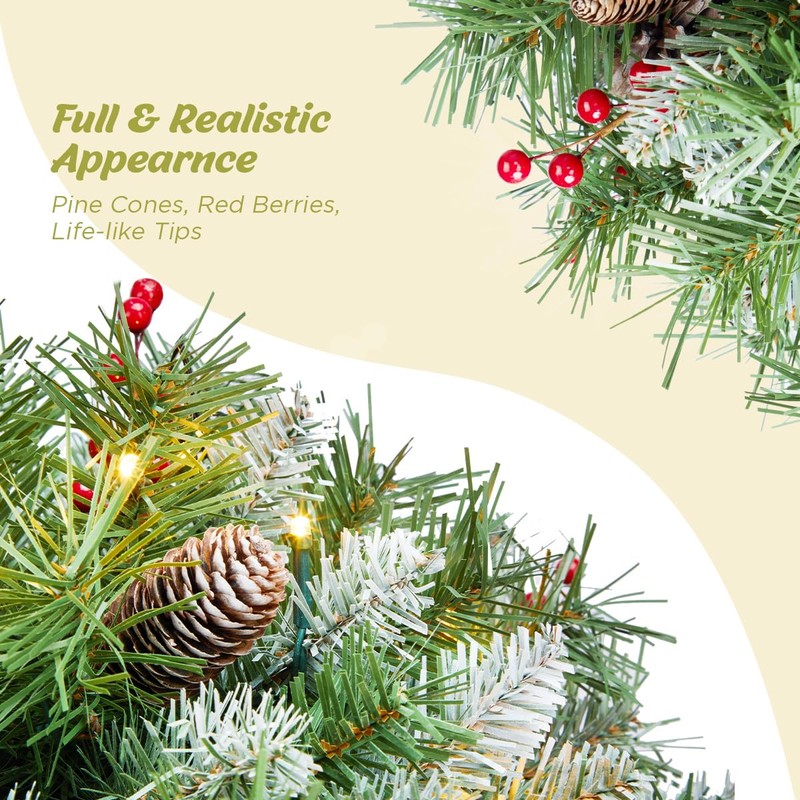 ANOTHERME Pre-lit 20inch Artificial Christmas Hanging Basket, prelit with 30 Battery-Operated LED Lights, Decor with Pine Cones and Red Berries for Indoor Outdoor Holiday