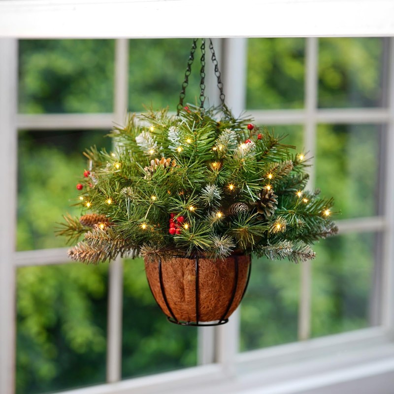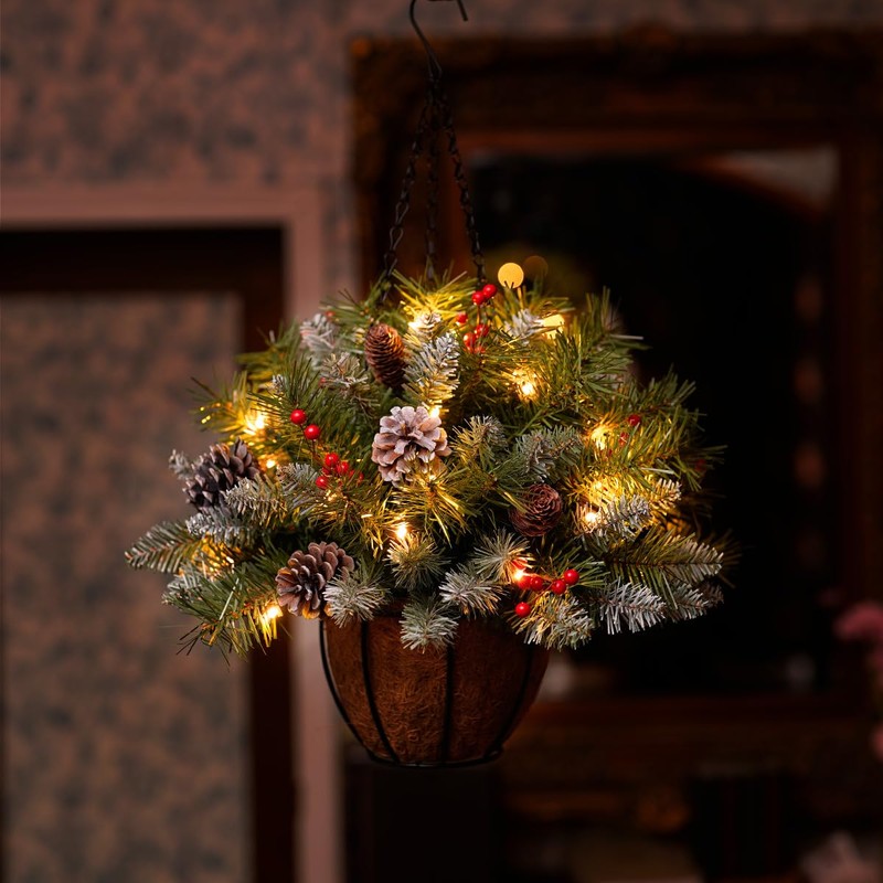 - Pre-lit Hanging Basket with 30 LED lights: ANOTHERME Christmas Hanging Basket with lights add a romantic atmosphere to your home. 30 battery-operated LED lights are long-lasting to be 6-hour on. (Batteries are not included)