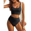 ANRABESS Bikini Sets for Women 2 Piece High Waisted Tummy Control Color Block Summer Beach Swimsuit Ribbed Swim Bathing Suit Black Small
