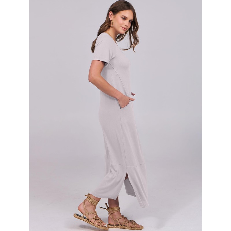 ANRABESS Women's Summer Casual Short Sleeve Long T Shirts Maxi Dresses V Neck Split 2025 Beach Vacation Dress with Pockets Large Light Grey