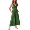 ANRABESS Women's Summer Wide Leg Linen Jumpsuits Dressy V Neck Sleeveless Casual Pants Rompers 2025 Vacation Beach Outfits Green Medium