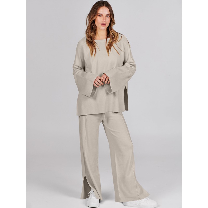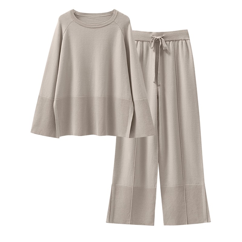 - Match - Perfect in a so soft knit fabrication, this two piece matching sets is a cozy instant outfit.Slouchy, relaxed fit with wide-leg pants.