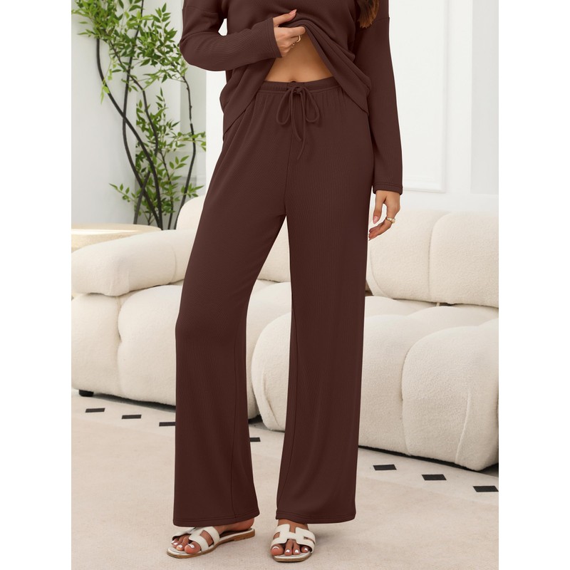 ANRABESS Womens Pajama Sets 2 Piece Outfits Matching Lounge Set Casual Ribbed Knit Long Sleeve Pj 2025 Fall Winter Sleepwear Dark Brown Small